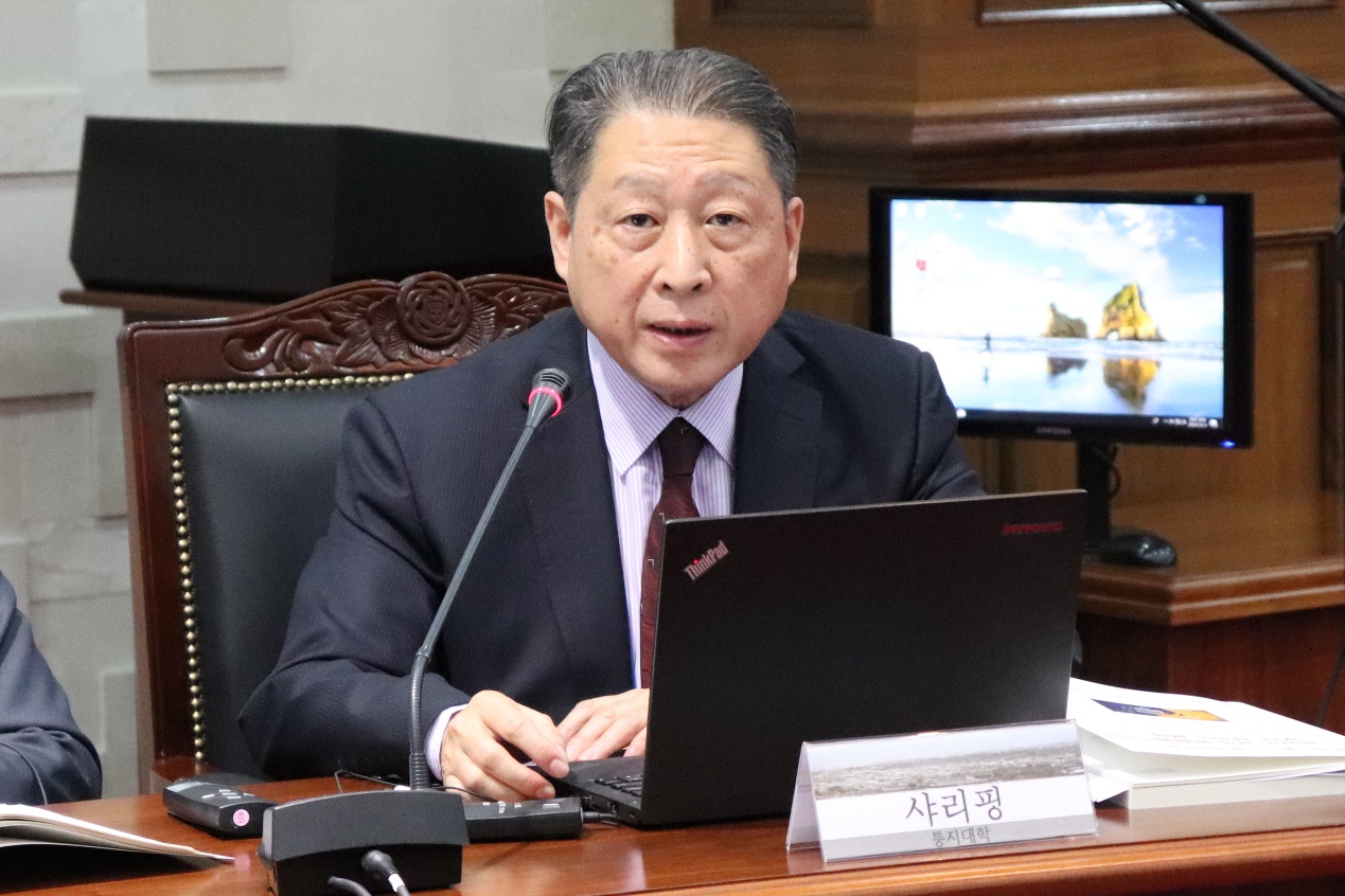 Tongji Distinguished Professor Men Honghua, Dean of SPSIR and President of the Institute for China & World Studies of Tongji University, moderated the second session themed “Economic Cooperation in Northeast Asia”. The four panelists included Zhou Tianyong, a professor at the Party School of the Central Committee of the CPC, Paik Gwon-ho, a professor at Yeungnam University, Dr. Li Boying from SJTU, and Won Dong-wook, a professor at Dong-A University.