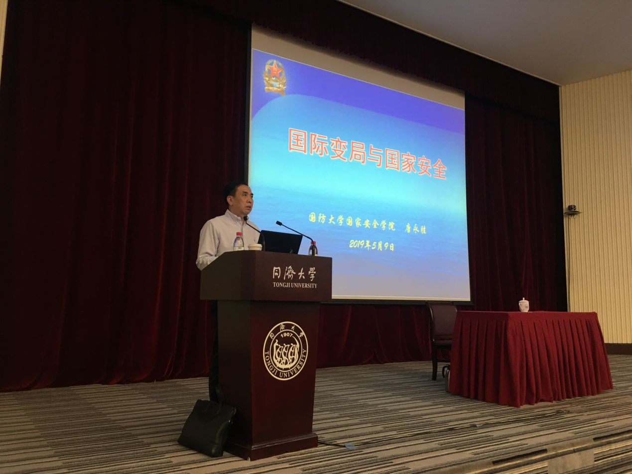 Co-hosted by the Graduate School and the School of Political Science & International Relations of Tongji University, the Tongji Advanced Lecture for Graduate Students No.83 “Global Changes and China’s National Security” was held in Lecture Hall 101, Yifu Building, Siping Campus on May 9, 2019. Major General Tang Yongsheng, Vice President of the College of National Security of PLA National Defence University, was invited to give this high-level lecture, which was moderated by Tongji Distinguished Professor Men Honghua, Dean of School of Political Science & International Relations.