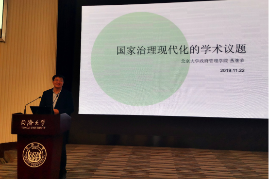 Hosted by the Institute for China & World Studies and the School of Political Science & International Relations (SPSIR) of Tongji University, the Tongji Serial Lectures on Social Sciences No.18 & the Tongji Advanced Lectures for Graduate Students No.41 was successfully held in the lecture hall on the first floor of Yifu Building, Siping Campus, Tongji University on November 22, 2019. Professor Yan Jirong, Executive Vice Dean of the School of Government at Peking University and a Changjiang Scholar, was invited to give a keynote speech entitled “Academic Topic on the Modernization of State Governance” for Tongji teachers and students. This lecture was moderated by Professor Xu Hong, Secretary of the Party Committee of SPSIR.